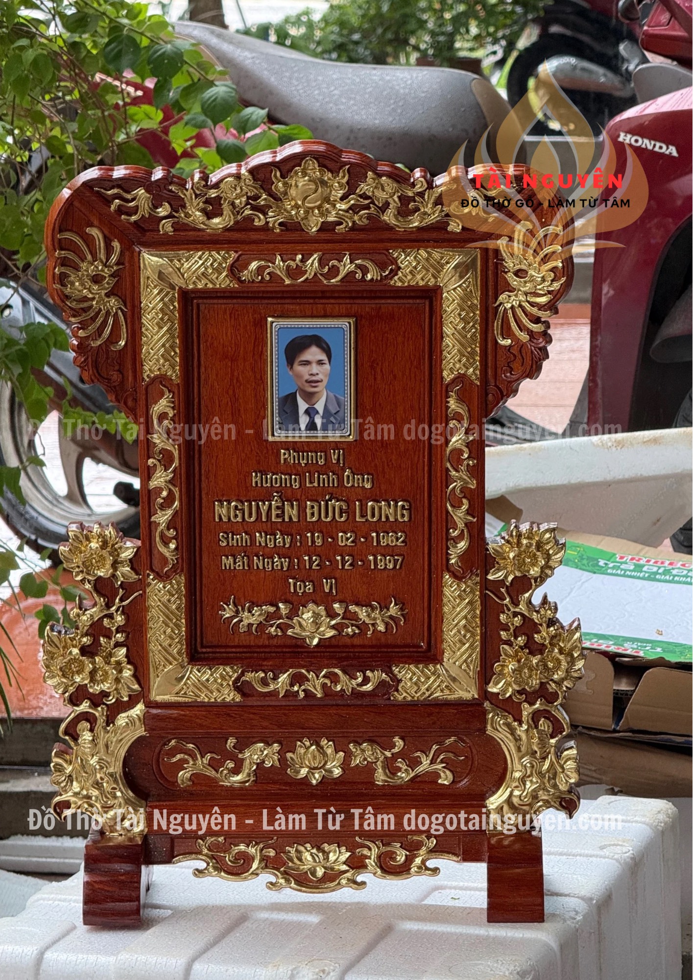 Bài vị thờ gia tiên Chất liệu: gỗ hương đá Chất liệu ảnh: ảnh men sứ Kích thước : 61x41cm Khắc chữ trực tiếp trên gỗ Tư vấn: 0329901505