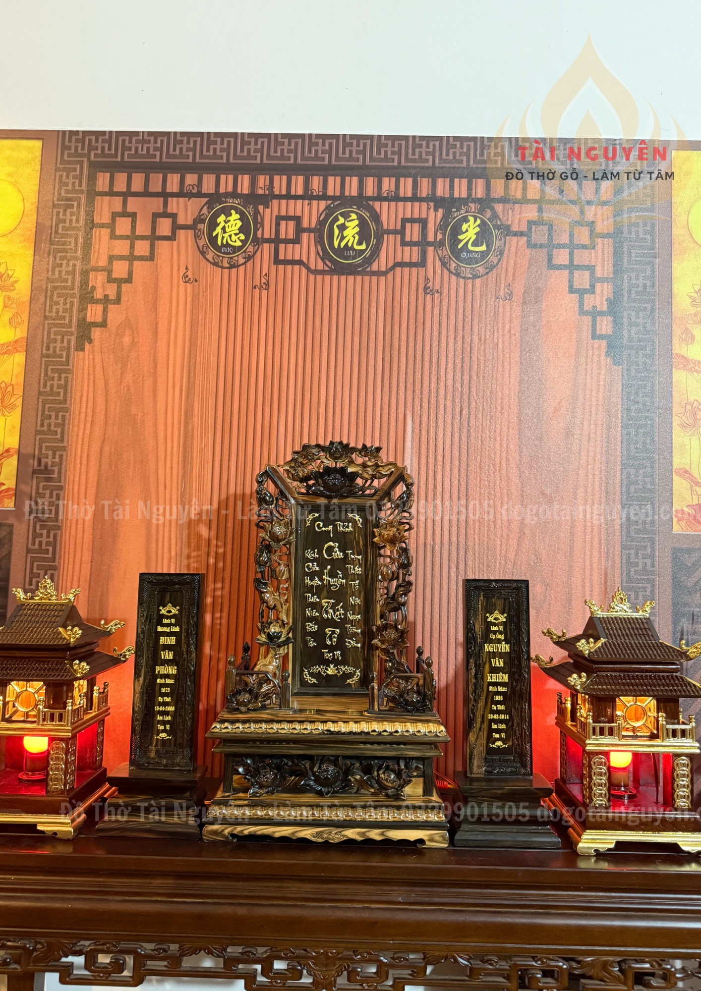 Bài vị thờ gia tiên làm bằng gỗ mun
