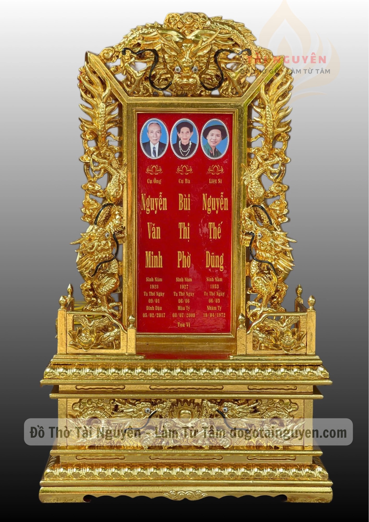 Long vị đục rồng cho 3 vị gia tiên Kích thước: điều chỉnh theo yêu cầu Chất liệu: gỗ gụ, gỗ hương